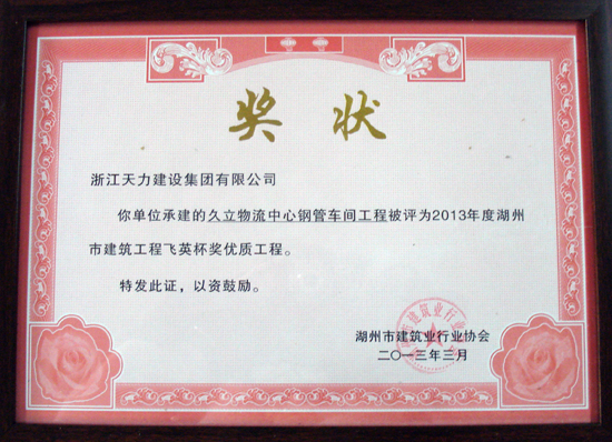 久立物流中心鋼管車間工程被評為2013年度飛英杯