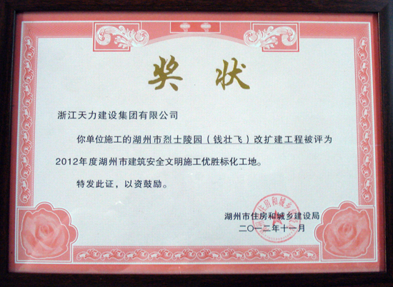 湖州市烈士陵園(錢壯飛)改擴(kuò)建被評(píng)為2012年度市優(yōu)勝標(biāo)化