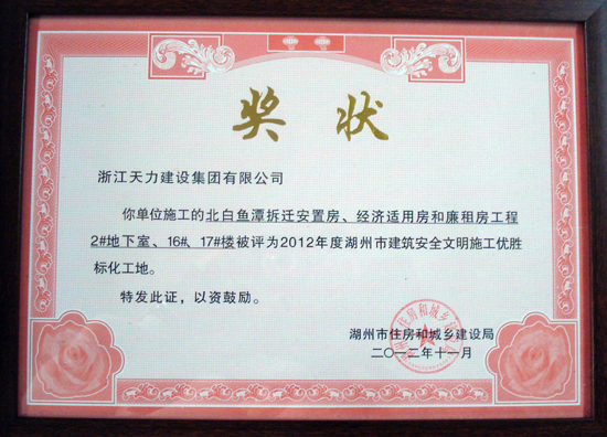 北白魚(yú)潭拆遷安置房、經(jīng)濟(jì)適用房和廉租房工程2#地下室、16#、17#樓被評(píng)為2012年度市優(yōu)勝標(biāo)化