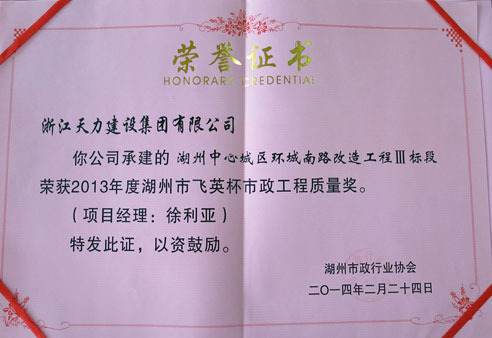 2013年飛英杯市政工程質量獎中心城區(qū)環(huán)城南路改造工程