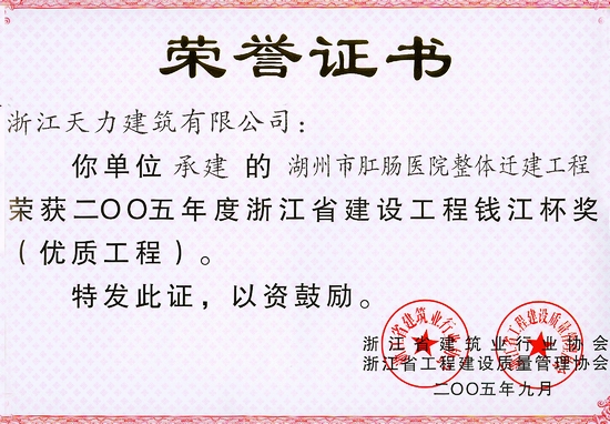 湖州市肛腸專科醫(yī)院整體遷建工程2005年度浙江省錢江杯