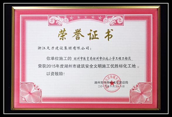 2015年度湖州市建筑安全文明優(yōu)勝標(biāo)化工地-湖州市教育局湖州市仁北小學(xué)工程二標(biāo)段、年產(chǎn)5000噸大型設(shè)備用耐腐蝕換熱管束技術(shù)開(kāi)發(fā)及產(chǎn)業(yè)化項(xiàng)目、南潯金象湖公園商務(wù)會(huì)所、東南華府四期房地產(chǎn)項(xiàng)目