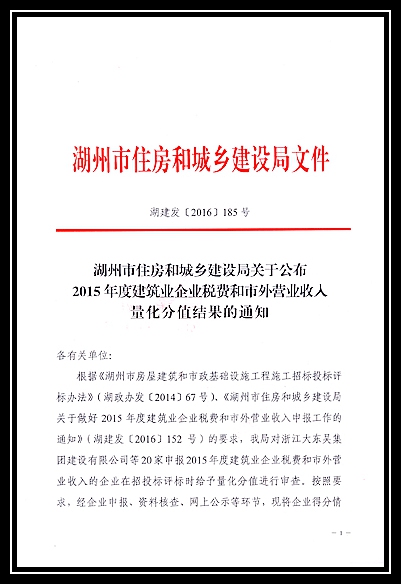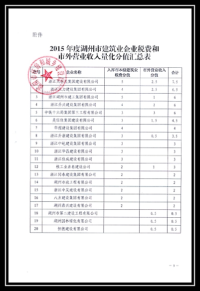 2015年度建筑業企業稅費和市外營業收入量化分值結果的通知