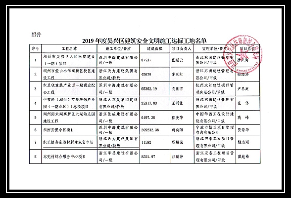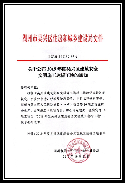 2019年度吳興區(qū)建筑安全文明施工達標工地