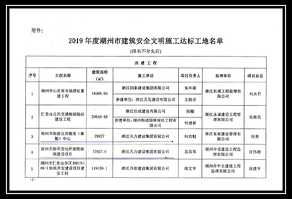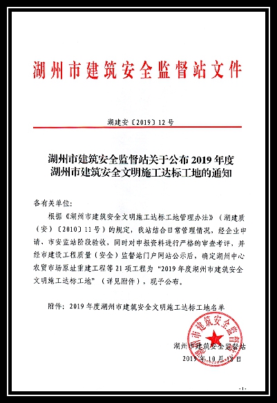 2019年度湖州市建筑安全文明施工達標工地