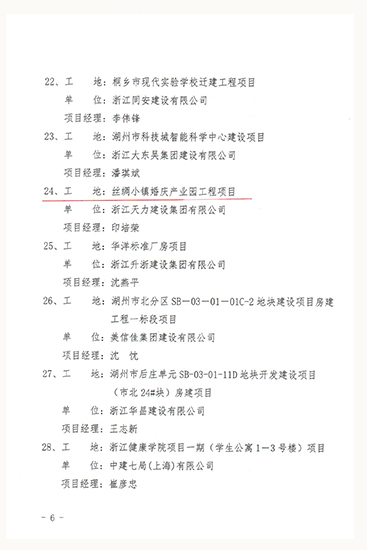 2019年度浙江省建筑施工企業“文明現場、和諧工地”競賽先進工地