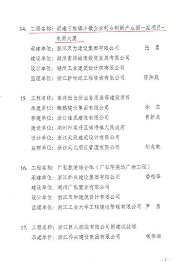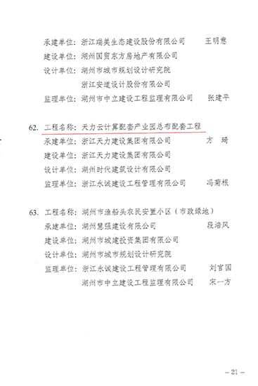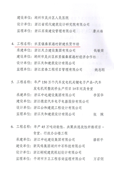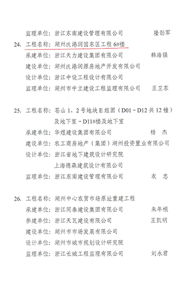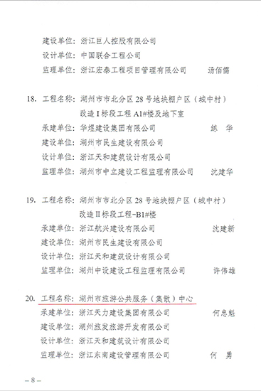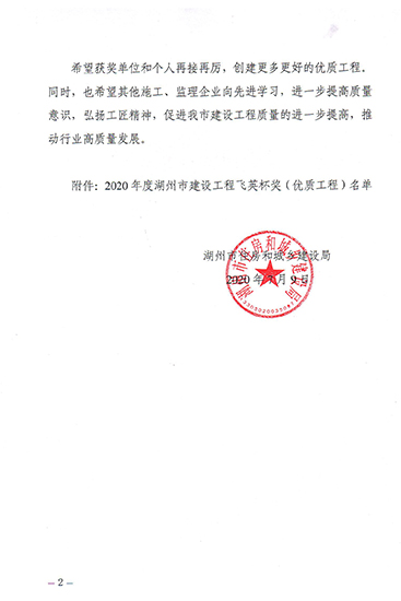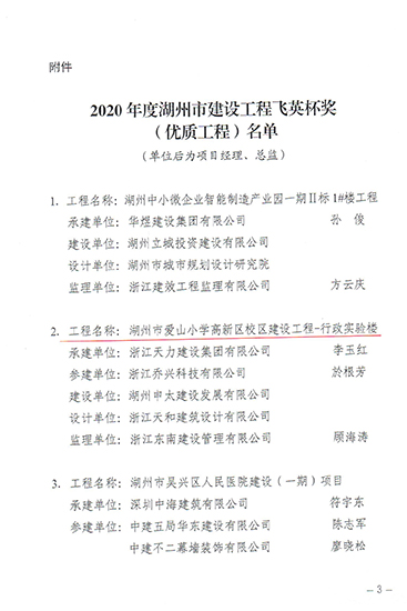 2020年度湖州市建設工程飛英杯獎(優質工程)