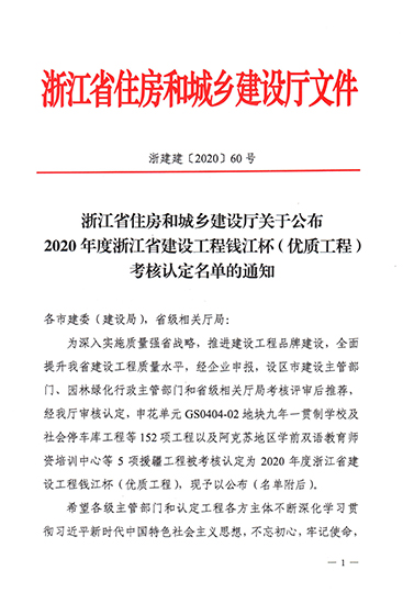 南潯金融服務中心2020年獲錢江杯