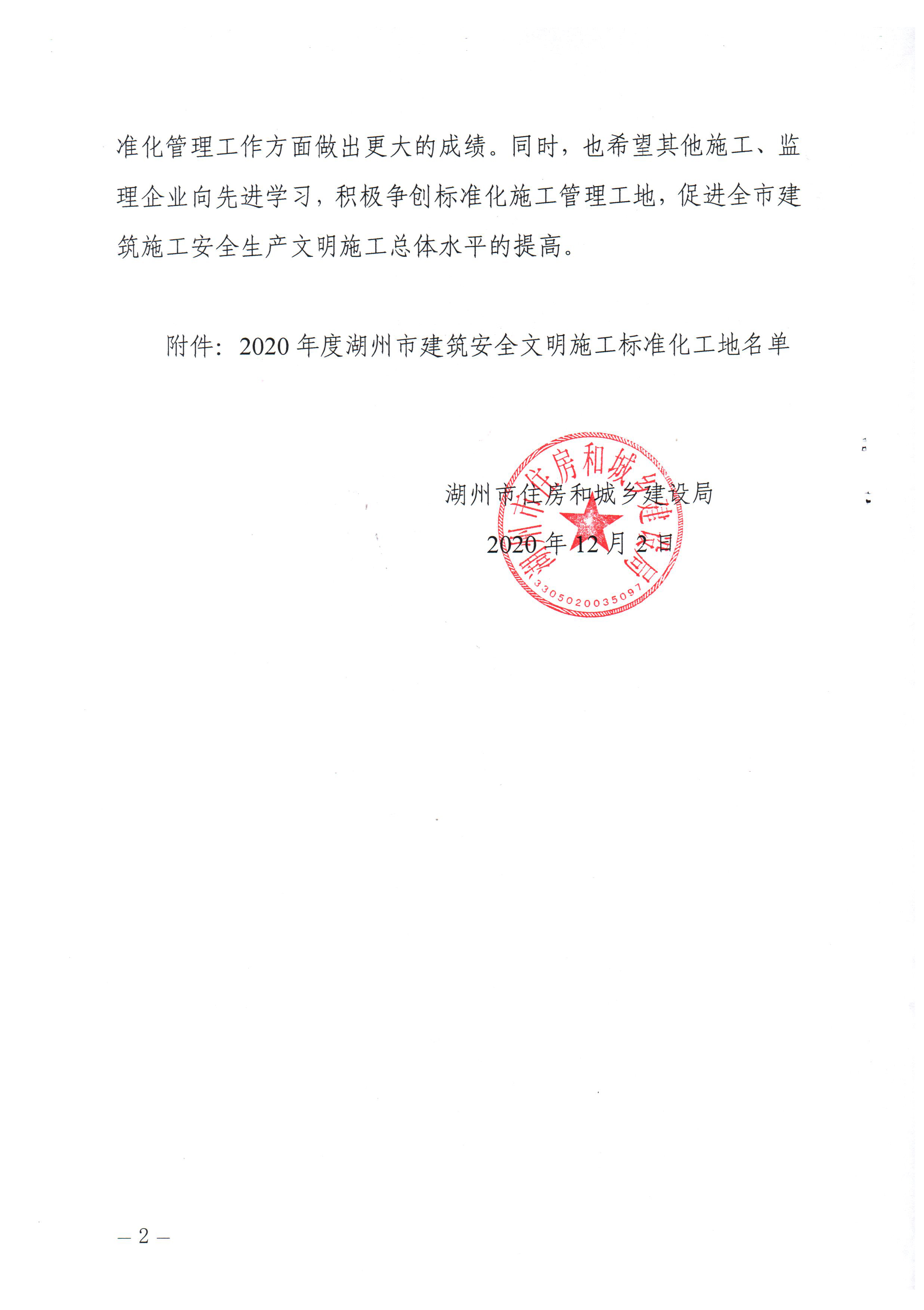 2020年度湖州市建筑安全文明施工標(biāo)準(zhǔn)化工地