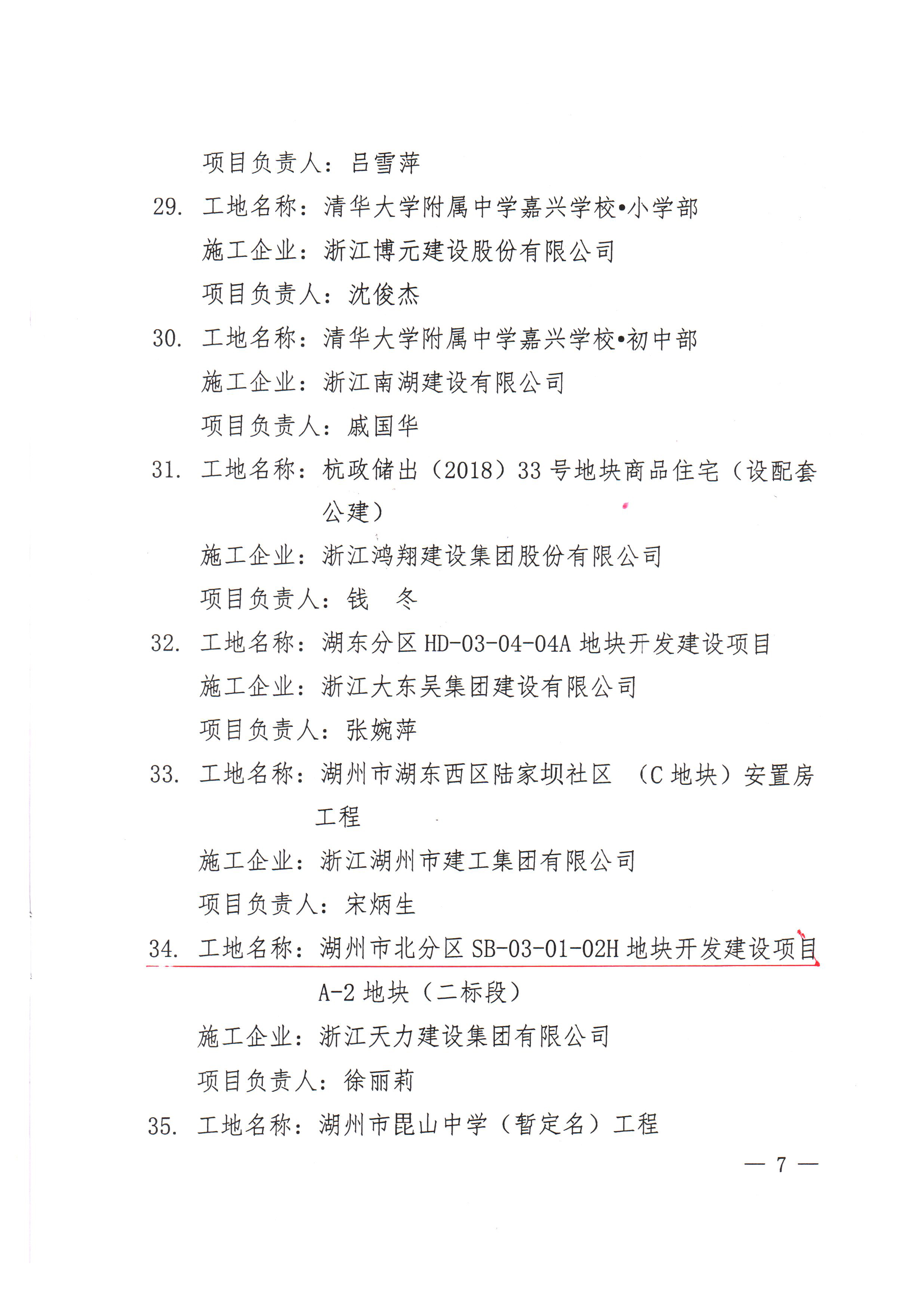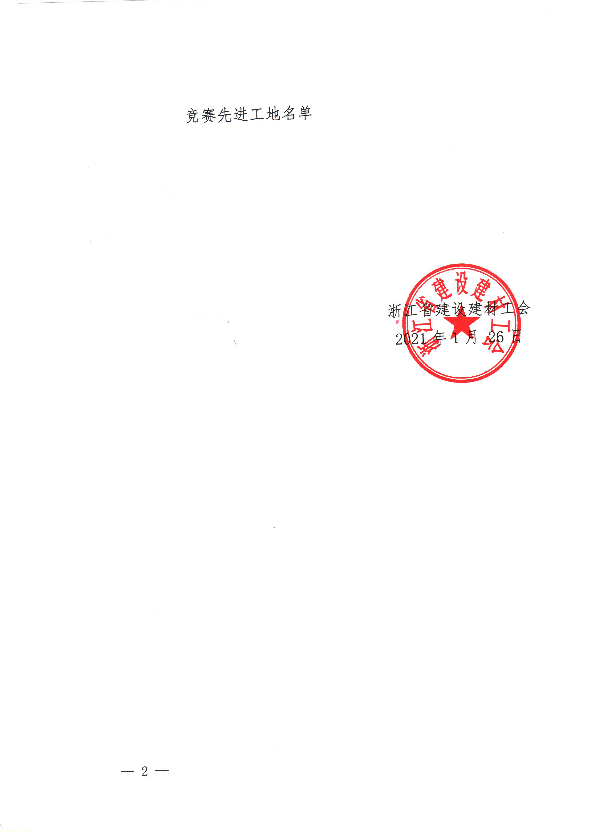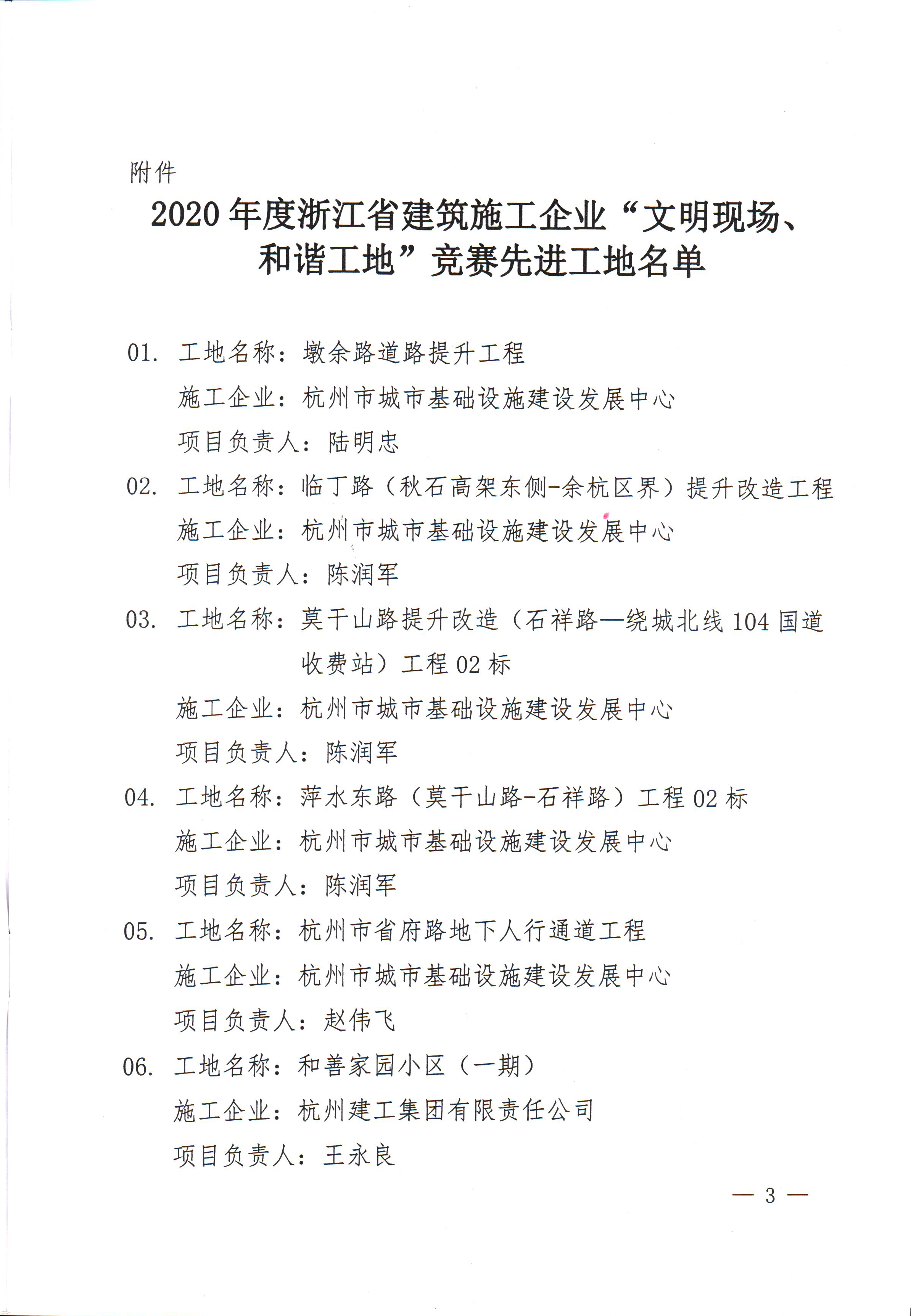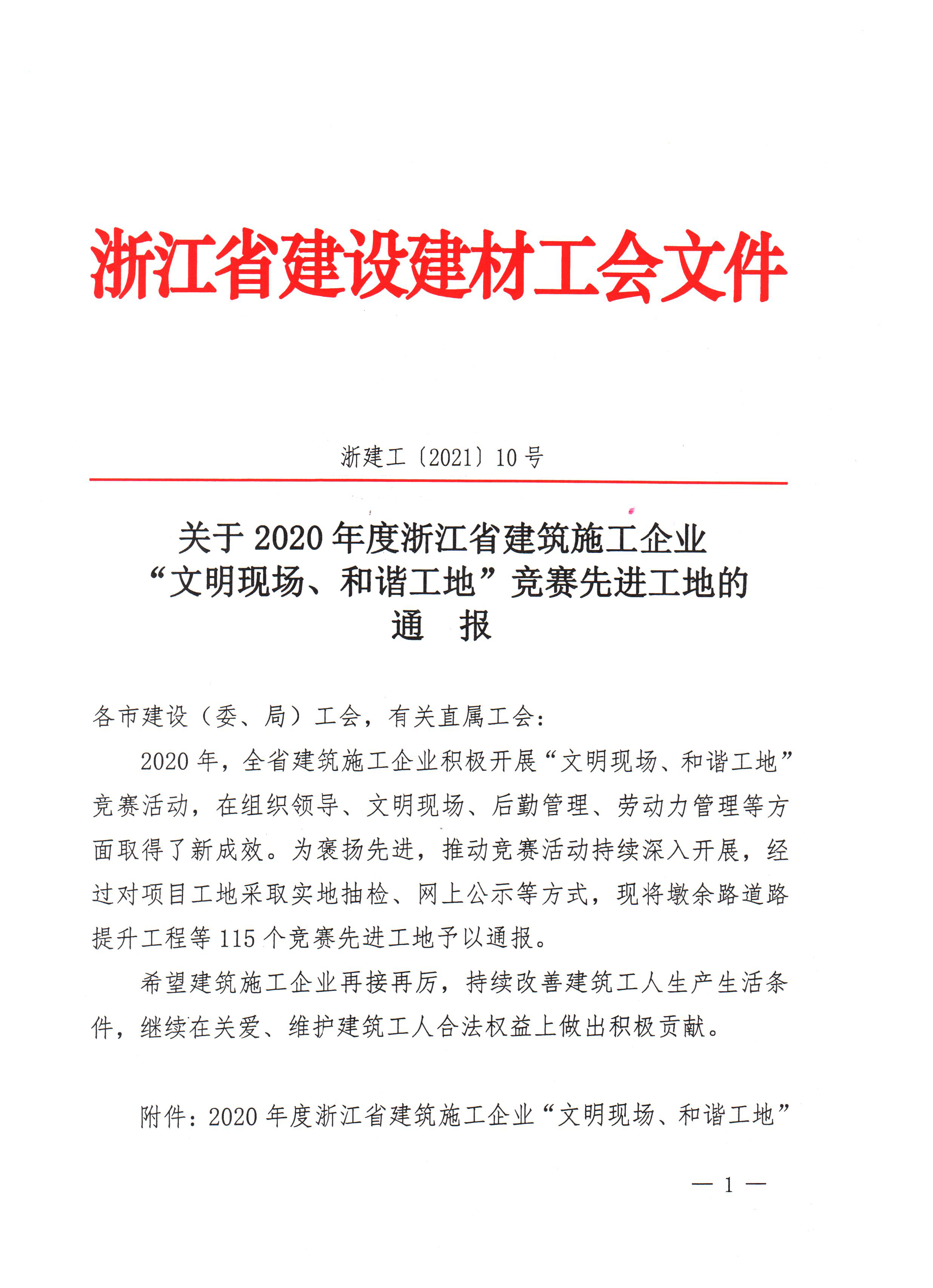 2020年度浙江省建筑施工企業“文明現場、和諧工地”競賽先進工地