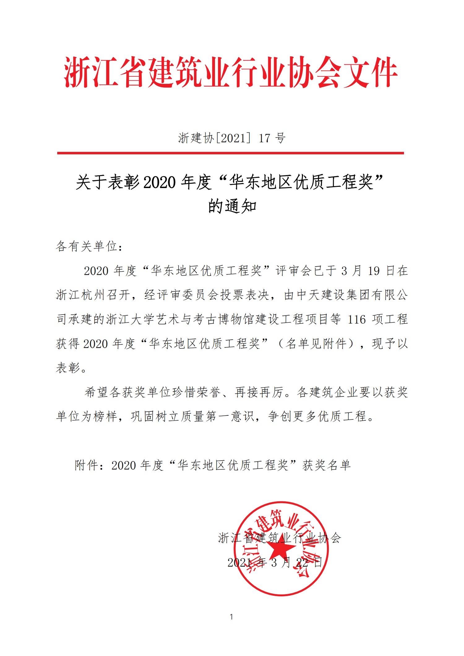 2020年度華東地區優質工程獎