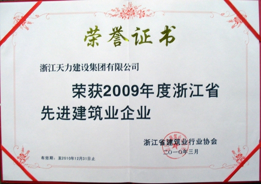 2009年度浙江省先進建筑企業