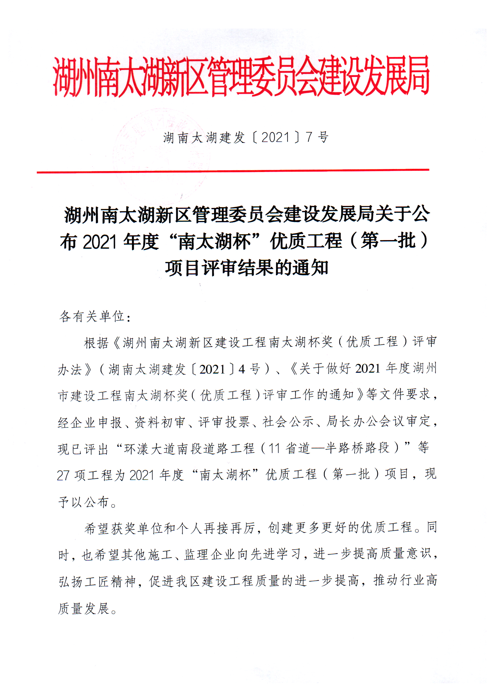 2021年度“南太湖杯”優(yōu)質(zhì)工程