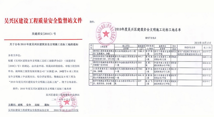 2010年吳興區建筑標化安全工地