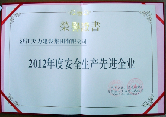 2012年度安全生產(chǎn)先進企業(yè)