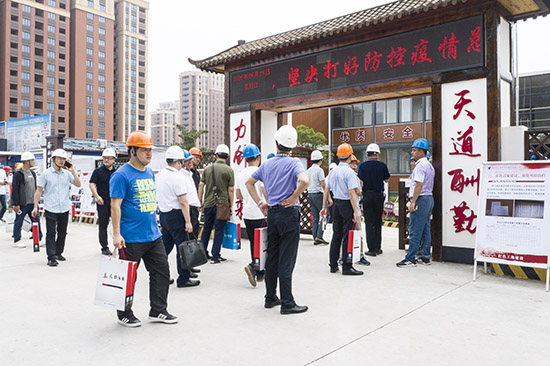 大力推進“五色工地”建設,是通過紅色黨建引領工地建設、綠色施工規范工地建設、藍色智慧助力工地建設、青色安廉保障工地建設、金色質量提升工地建設,著力增強監管工作的針對性和有效性,提升建筑業行業管理能力和提高項目管理水平。觀摩會上,來自各縣區建設主管部門、城市集團相關領導,一級以上施工企業、房企負責人和其他監理單位負責人等300余人參觀了32號地塊,對項目現場安全生產、質量創優、綠色施工、智慧工地等管理水平給予了高度評價。