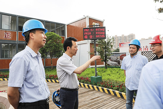 董立新副主任一行現場調研考察了32號地塊項目施工進展情況及現場揚塵管控大氣污染綜合治理工作開展情況,針對污染物排放現狀、環保設施運行情況、重污染天氣應對等工作與各領導進行了深入交流。董立新副主任對32號地塊項目高度重視施工現場揚塵管控大氣污染防治工作,運用智能APP控制揚塵灑水設備與雨水收集系統,認真貫徹揚塵污染防治工作要求,嚴格落實施工工地“七個百分百”的各項創新舉措予以認同,同時也對下一步大氣污染防治工作提出了具體要求。